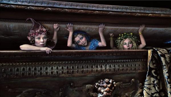 What ensues is the happy-go-lucky love story we remember, just with a new, fresh, curious perspective. That perspective includes the man-wolf(-dragon) behind the crow that flies alongside our cartoon memory, an overwhelmingly dark use of thorns and secrets to the fairy world that fascinate even the oldest (and I mean adult-sized) kids and the introduction to three ditzy “fairy godmothers” who might as well have cursed the princess themselves.